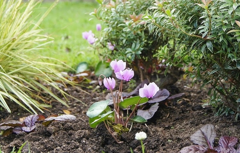 Cyklamen, då tänker jag på krukväxten som jag aldrig lyckas hålla liv i. Att det fanns för trädgården också visste jag inte. Så söt!